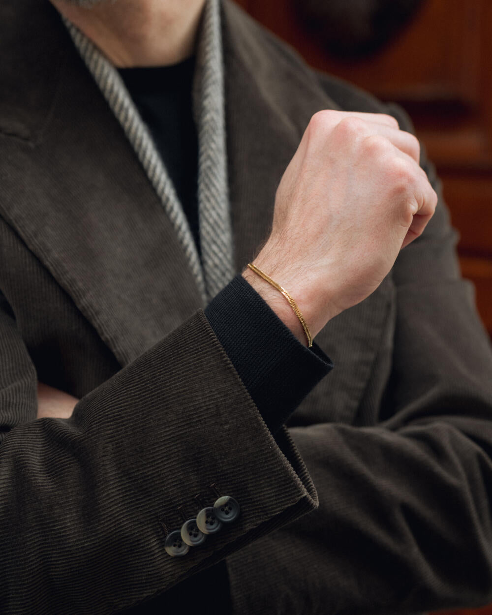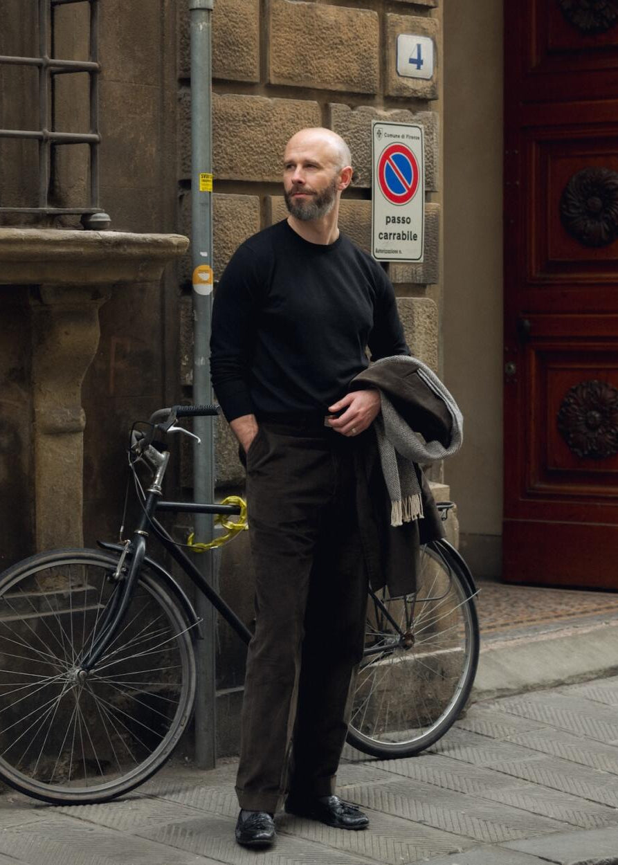 As to the gauge, the factory in central Italy uses an adapted knitting bed to knit at 37 gauge (the number of needles to the inch). For comparison, John Smedley’s fine knit is 30 gauge.